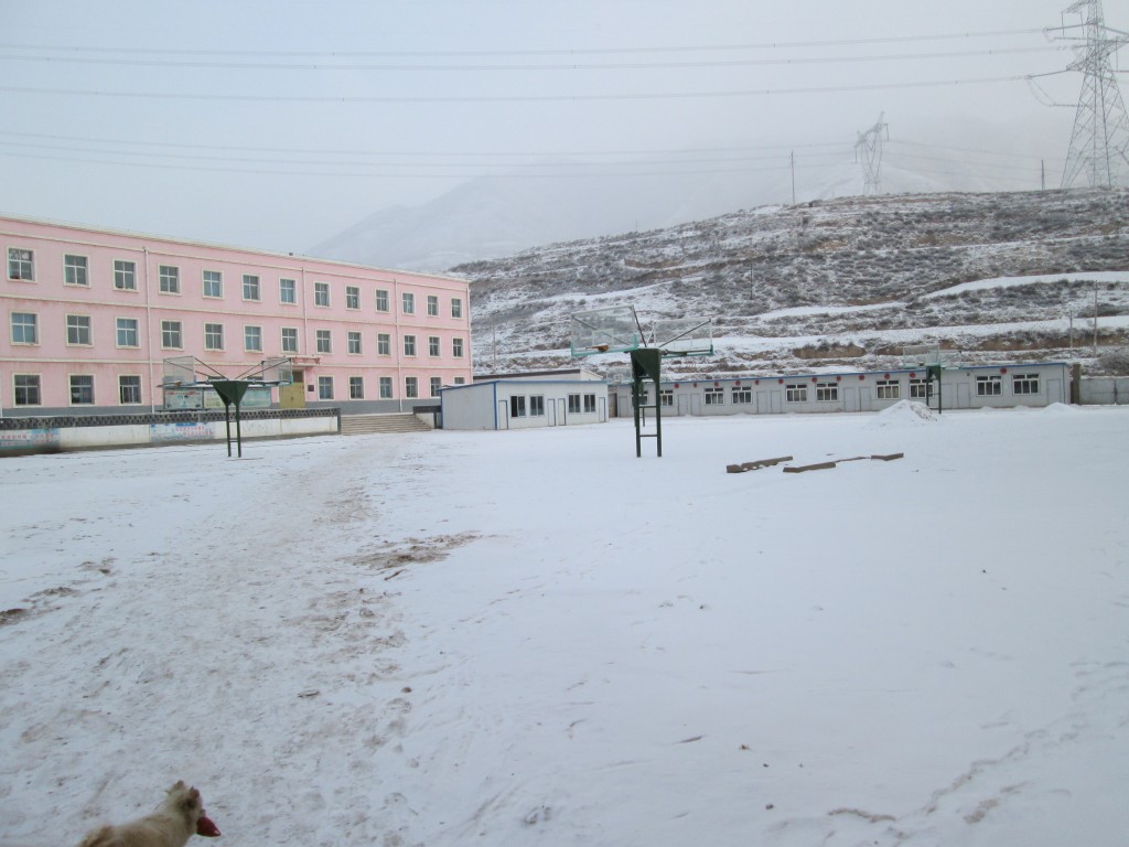 昨天晚上下雪了,大地披上了一层厚厚的白色毛毯,天空也一片白,万物都白了,我沉醉在这入仙境般的白中,向操场望去,在操场的最中央有一路整齐的脚印,这应该是早晨去教室读书的学生留下的足迹。