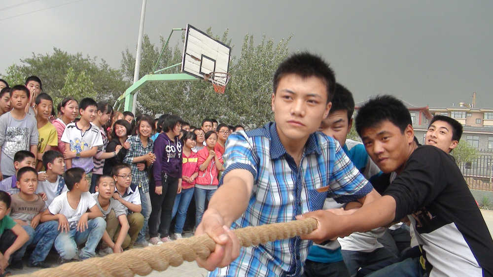 比赛正式开始了,这边的队员们,正在努力地拉。代课老师和班主任,也在旁边给自己代的班加油,希望能取得好成绩,师生共同努力、相信这个班这次一定能取得好成绩,能够金榜题名。