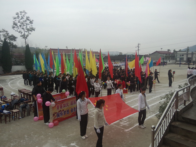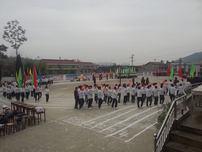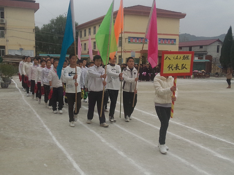 早上8点左右,学校全体师生汇聚一起,参加了开幕式。九年级二班是仪仗队。四个女生穿着纯白色外套和黑色运动鞋,举着一面鲜红的国旗走在队伍的最前面,紧接着的是四个男生抬着巨幅运动会宣传展板,他们后面是各个班级的队伍。经过二周的绕场后,开幕式进入了高潮阶段,学校领导致开幕词,裁判员代表和运动员代表发言。