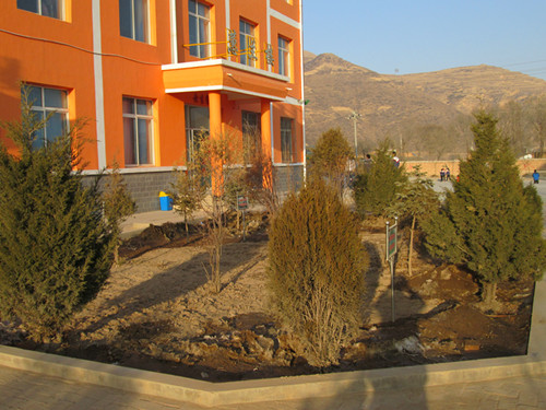 学校校国里的花坛里种着许多花草,春天它们群芳争艳,看上去美丽极了.在一个花坛里,还种有许多奇形怪状的树,它们枝杈相映成趣,果真别有一番风味.操场是水泥地,上面画满了黄色的线条.它们将操场分成一个个区域,有篮球场、有排球场、有羽毛球场等.在操场外围种着一些小灌木,它们形成一堵绿墙,美煞人啊!