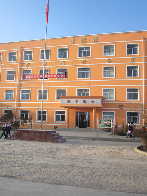 从大门直入二行清翠的松树直立在楼门面前,也似一道守护神保护我们学校,我们的教学楼就在国旗的正前方,每当看到随风飘扬的旗帜心里就有一种别样的情感。在这个教学楼上充满了太多太多我们的回忆,每日清晨我们在这所楼上进行晨读、学习,这个楼承载了我们酸甜惊慌的往事,有为同学的离散而流泪,有为老师的教导而羞愧,有为获得成功的喜悦。这一点一滴都牵引着我们的心,教学楼的旁边是我们的宿舍楼,是我们尽情放松的地方,一天的疲惫委屈,它都替我们默默承受,只为了我们有个愉快的梦。