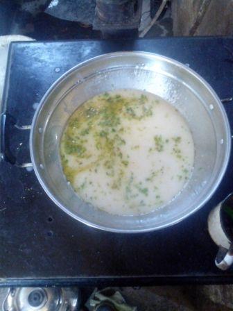 听到这你一定觉得很难做吧?不难。它其实非常简单,但有一点麻烦。可我相信你为了美食可以付出一切。下面我就给大家说说它的做法吧!首先,就是最费事的酿浆水,其实也就是整过程中最费时费力的工作,可如果浆水酿不好将会影响最后出来的味道,所以在这个过程中一定要用心。先找一个小的缸,刷洗干净,选一个蔬菜将其切成大块,放入缸中,然后倒入浆水觉子。(大概是发酵一类的水吧!)这个东西一般不会第一次能做出,但你到附近的超市,应该可以买到。倒入之后,倒入适量的水封好盖子,等待发酵。当两三天以后打开盖子尝一尝,看看是不是很酸,如果酸的话,那就意味着可以做下来的一步了,很期待吧!