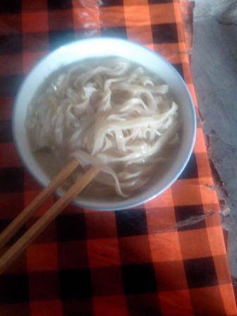 当然,再煮熟之后要浇上浆水再放上泡的酸菜,再滴上辣子油,真乃是锦上添花,美味无比。嘿,嘴馋了没?
