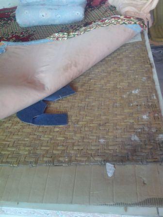 家乡做把一个炕称为‘‘盘炕’’,为什么要说是盘炕呢?原来是在做炕时需要将土砖一层层的围起来,这就是所谓的‘‘盘’’。盘出一个像围墙一样的东西,再在围墙上支几根棍子,然后在上面铺土砖,最后用泥将所有的缝隙密封,用火烧干后炕就盘好了。炕盘好后还不能直接睡人,要是直接睡人的话,就会被硬邦邦的炕咯得生疼,因此要在炕上铺几层东西。通常在第一层会放一层麦秸,第二层铺一层竹席,第三层铺棉絮或海绵,再在上面铺上一层床单,睡上去就非常舒服了。