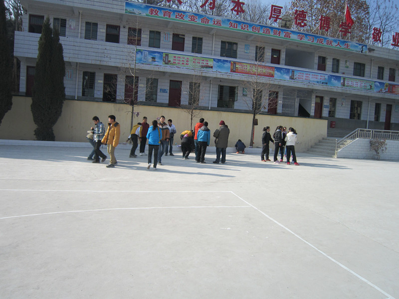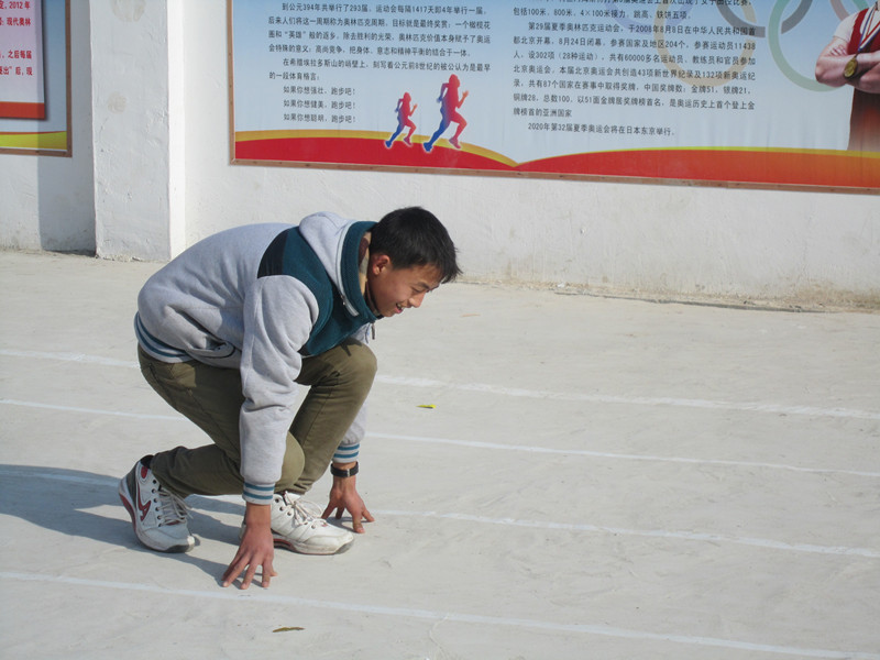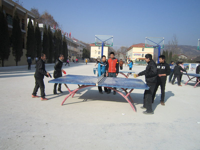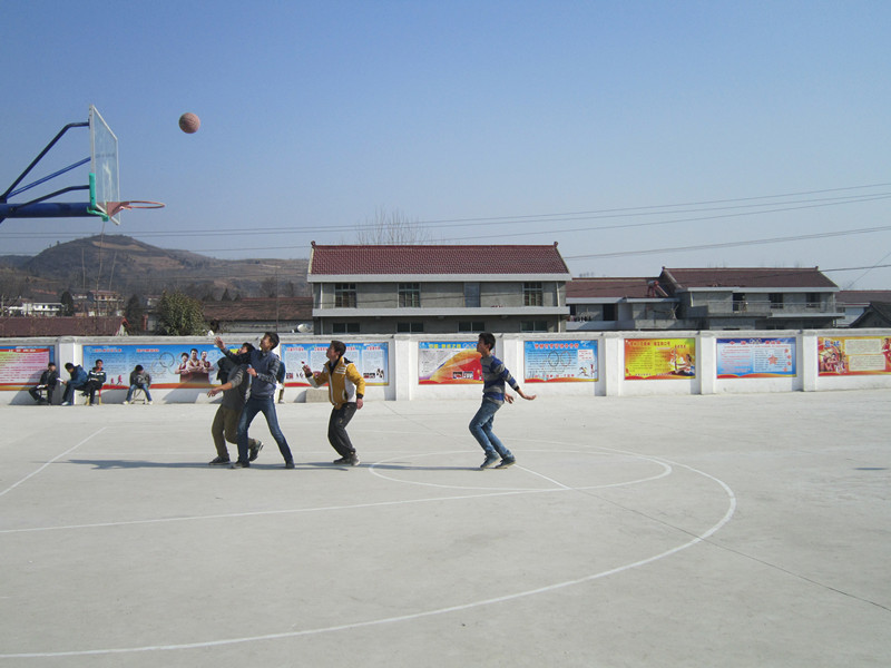 我们的操场并不宽大,周长约250米,操场中间屹立着四架篮球架,旁边还有几个淡蓝色的乒乓岸,还有最近刚刷出的雪白的起跑线。这就是我们全校师生活动的场所,虽然简陋,但这儿却有我们的欢乐。
