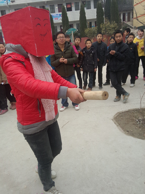 一锤定音是我最喜欢的活动。游戏规则:游戏人将蒙眼睛的红色用具戴在头上去敲挂在树上的铜锣,站在离树三米外的位置转三圈,再停下来向前走,去敲铜锣。只能敲一次,如果没敲到罗就算失败。同学儿们都积极参加为我们的校园生活增添了几分色彩。