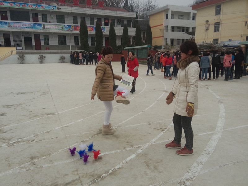 踢毽子是女生的活动,各位女教师也积极参加了此项活动。由于刚开始,女孩子们踢毽子的动作并不太规范,老师亲自为我们做了示范。
