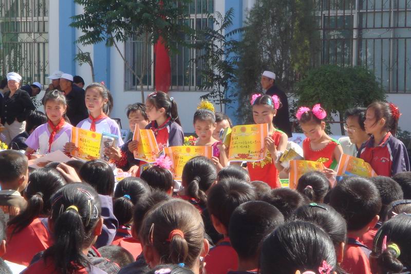 今天,不只是小学生高兴,小朋友们的家长也来了,他们要看看自己的孩子怎样来过自己的节日!每一位家长的眼中,都显现出喜跃,因为这是他们孩子的节日。