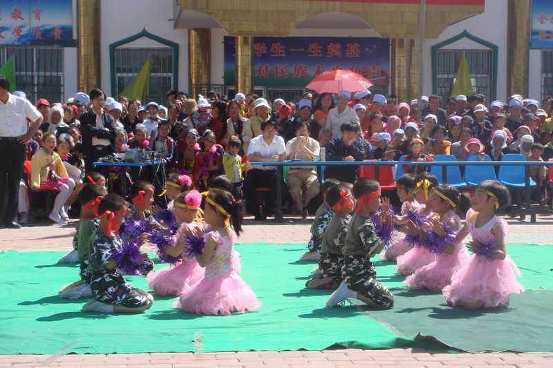 二年级的小女孩跳的可带劲了。他们个个面带笑容,想用自己的最美的笑容来迎接这个属于他们自己的节日。