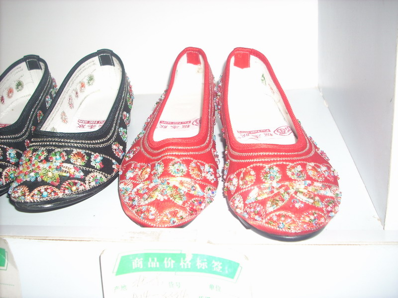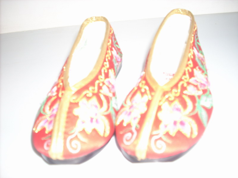 瞧,这是一双多么漂亮的鞋。它不仅颜色鲜艳,而且绣的花儿也可谓是巧夺天工啊!它看上去给人一种美的感觉,相信穿上也很舒服吧!
