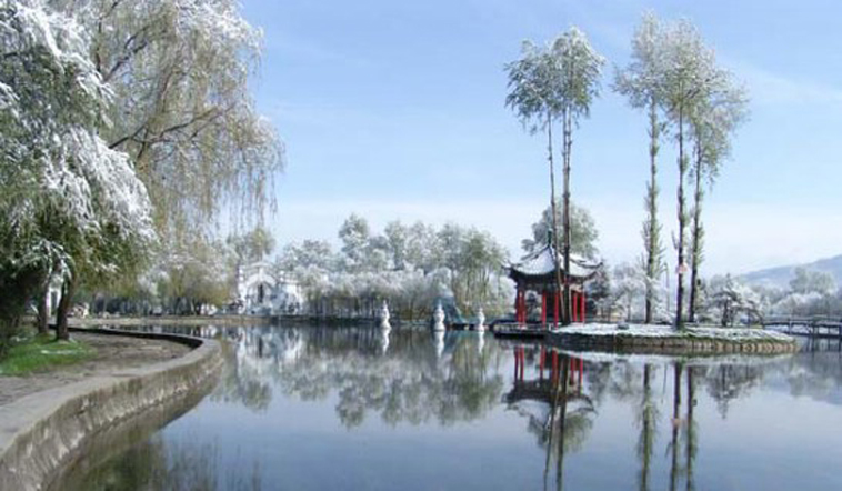 冬天,树上的叶子全掉了,到处光秃秃的,人工湖结了厚厚的冰,小朋友在冰上滑冰,做游戏。啊!大通公园真是人们游玩的好地方。