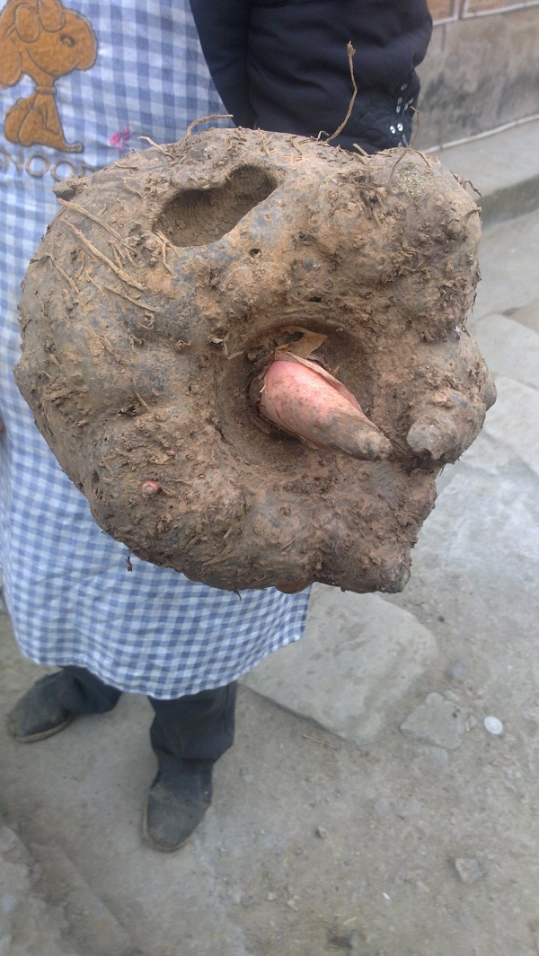 "灰菜",因为它呈现出深灰或者浅灰色而得名,它其实是由魔芋混合大米制作而成。它的制作既复杂又费时。从土里挖出来的魔芋,有厚厚的皮。如果想让它变得"漂亮",就需要用钢丝球和小刀帮忙。但在清洗它的时候,有一个注意事项,那就是要带上胶手套,不然洗完后手会又麻又痒。