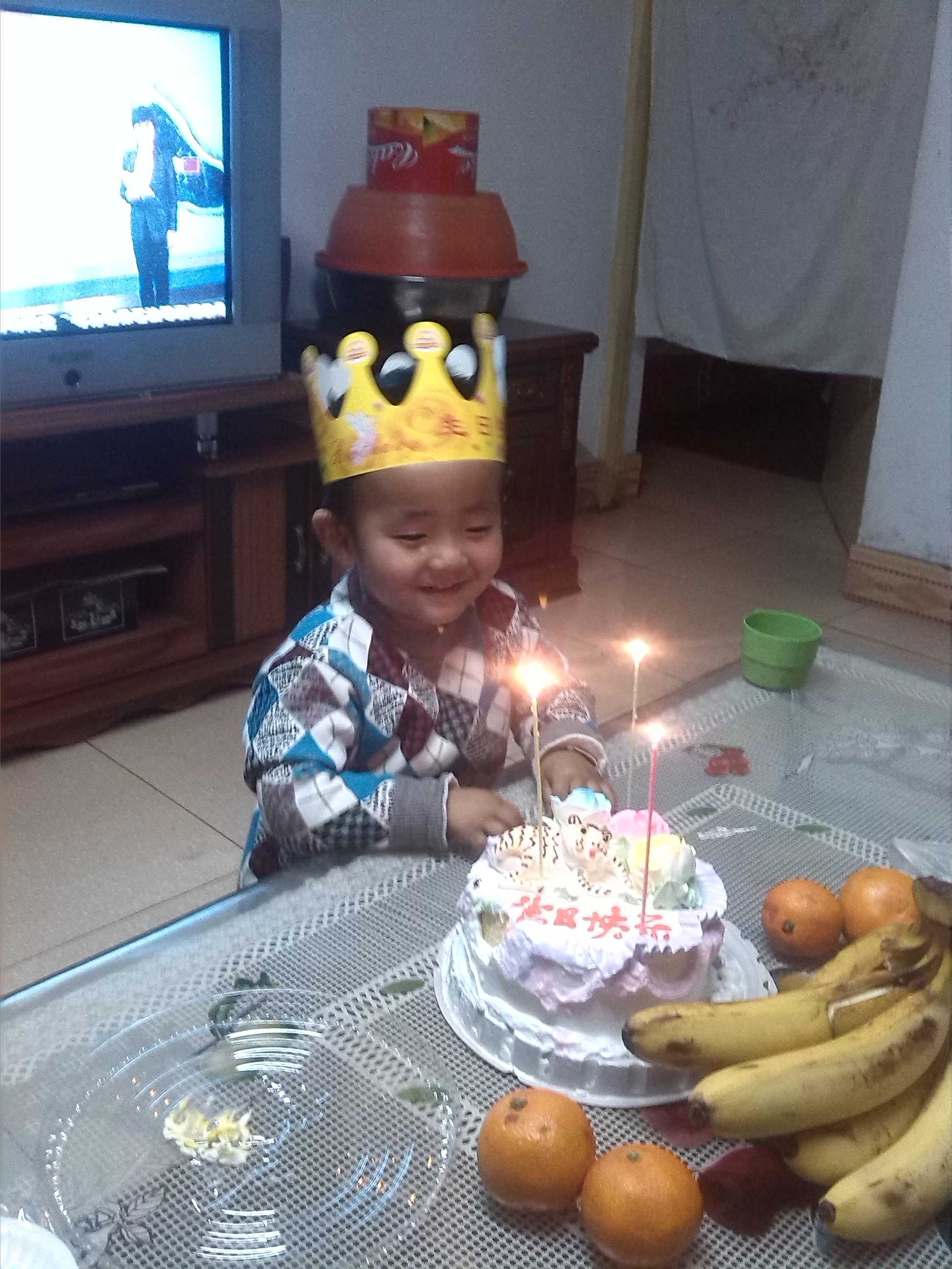 今天晚上我表弟过生日。他很高心 ,饭一吃我们就给我表弟过生日了。他自己给自己唱了生日歌,他就把蜡烛吹了。我们哈哈大笑。然后,我们就开始吃蛋糕了。