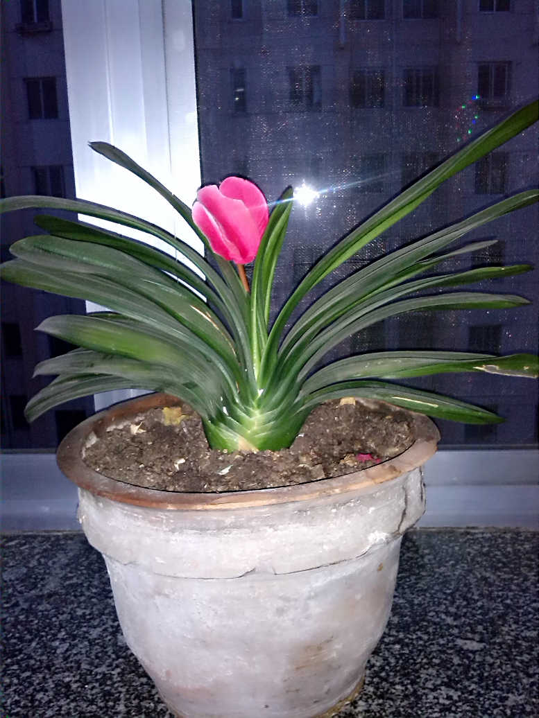 君子兰别名叫剑叶石蒜或达木兰。它的叶子是深绿色的,共有15片,每片长约17厘米,宽约4厘米,叶子顶端是椭圆形的。剑叶奇美、扇形翠叠、双双并立。从远处看,苍翠欲滴,像打上了一层蜡似的,油光闪闪,上面的叶脉非常清晰,它们长短参差不齐,两边对称。从君子兰总体形态上观赏,侧看一条线,正看如开扇;像孔雀开屏,让人百看不厌,留涟往返,可与名画比美,可与工艺品争辉。