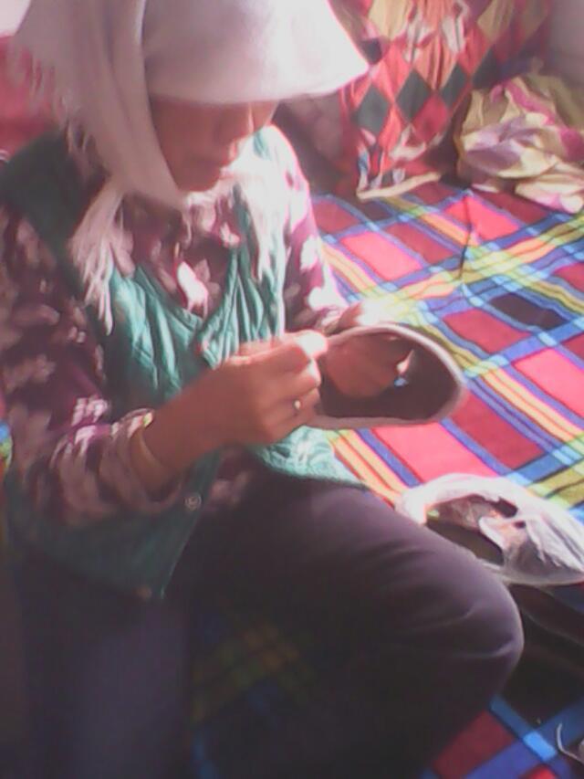 做鞋需要布料,鞋底,针线等,更需要妈妈的耐心,先开始做鞋的"膀子",妈妈的视力不好,很难"窜"上线,我帮妈妈。妈妈开始做了,我看着她那认真的样子,我想到了自己,有没有这样耐心对待过学习呢?妈妈经常教育我说"要耐心对待每一件事"因为这样会做得更好,看着妈妈,我知道了她的苦。