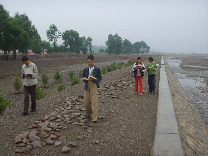 泾河和我们那是一种鱼儿和水的亲情,早晨我们在河提上读书,享受它新鲜的空气和清爽的滋味,就算是多么长的文言文,我们都不怕,寂静的空间,无人打搅的泾水河道,给我们提供了天然的学习空间,我们爱你泾河。在这里体背诵唐诗、宋词、元曲,那是一种享受,跑步在堤岸上,那是一种如在画中游泳的感觉。大自然把美赋予了泾河,泾河把美赋予了我们这大山里的孩子。