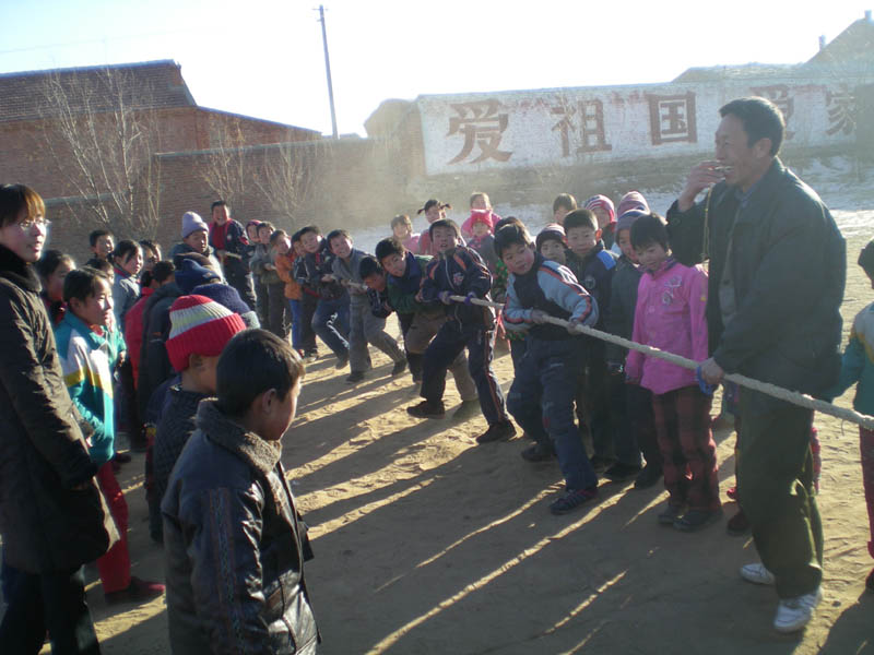 高年级的比赛更精彩。大哥哥们的拔河姿势更标准,他们一个个满头大汗,绳子一会儿从这边移去,一会儿又从那边移去,没参赛的同学喊着加油的口号,助他们胜利。最后六一班取得胜利。