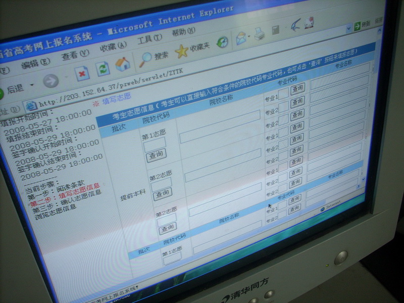 为高考工作的顺利进行,也为2008届高三学生填报志愿做好准备,我校在5月27日,开放学校机房,在班主任督促下,让学生进行考前志愿填报实战演练。此次演练,让学生能够不仅能够为6月的志愿填报作好充分准备,更能够锻炼同学们的动手能力。
