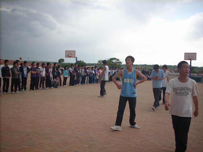 正赶上大阴天学校组织篮球赛,风又大,怪冷的,不过到我们班的时候希望会暖和一些吧。