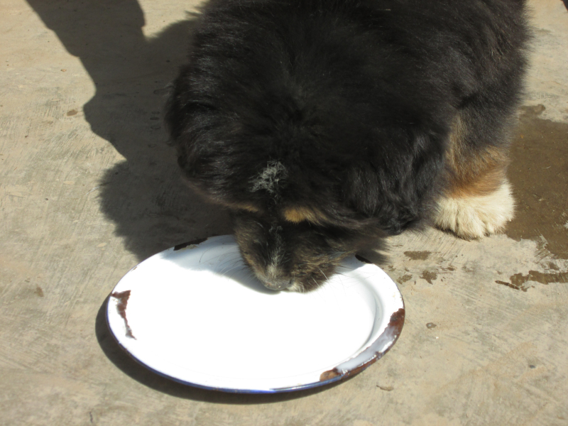 自从小狗进我家后就一直"吃香的,喝辣的"三爸把好吃的都留给小狗吃。不只这些,连我们家维生的羊奶也成了小狗的美味饮料。每天三餐,无一天没有羊奶。今天我只得给他喂奶了。