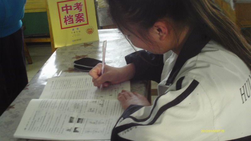 下午一进班门,现入眼帘的是这样一幅画面"有的趴在桌子边,不放过任何时间,在那里做着试卷,而有的同学却在嬉戏打闹。"真是一个鲜明的对比。作为初三的学生却没有一点紧迫感。唉。待会就要走入考场我也要赶紧去看看知识点,巩固一下。坐到座位上,心里没底。"叮铃铃......"伴随着铃声响起,我们就要同试卷去作斗争。