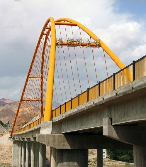 贵德黃河大桥是黃河上游的一座很重要的桥梁。今天的贵德黃河大桥号称黃河上游的第一桥,已经成为贵德、成为黃河、成为青藏高原上的一道亮丽风景线。 青绿色的黃河水由西向东静静的流淌着,郁郁葱葱的青稞撒滿田间地头,黃色的拱圈似兩道耸入云霄的彩虹,蔚藍色的天空飄着白云,宁静的青藏高原上仅有剩下河水的流淌声,难怪人们給了它一个美称"黃河清大桥"。