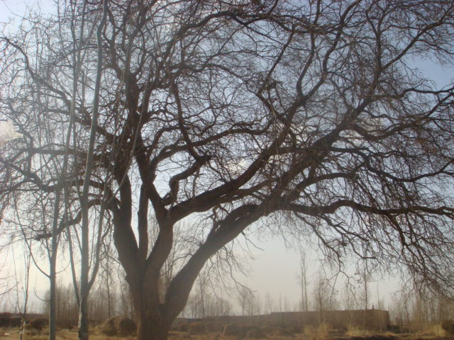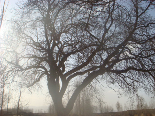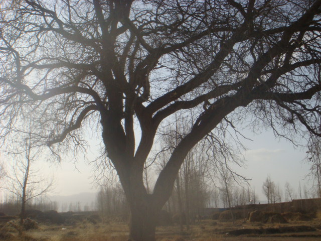 这棵树,是一位真正的勇者。风、霜、雪、雨,一次又一次的向它袭来,在它身上留下了一条又一条的裂痕,它依旧这样坚强伫立着。 这棵树,是人类文明的象征,这棵树,是大自然中的勇者,是新中国的绿化者,我向它致敬礼。