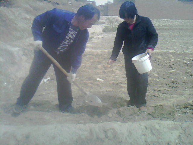 到达目的地后,爸爸先拿着铁铲挖好坑,而我挎着篮子丢土豆块,并且用脚把爸爸已经填好的坑踏平,有时,我忘了踏平土坑,爸爸就提醒我。