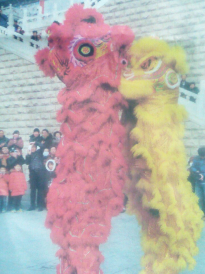 今天是2月14日,是东方的元宵节,也是西方的情人节。可小点的孩子过的可是汤圆节呀! 一早就兴高采烈的偷偷溜进厨房,吵着闹着要吃圆溜溜的汤圆呢! 早在正月初七、八里就渐淡了的年味儿也在今天又找回了这个"闹"。村子里今天也有场文艺表演,但这远远没有社火表演更吸引人。一早我就怀着一颗满是期待的心,一头扎进人群中,玩儿成了一片。 舞龙舞狮一个都不能少,但最不能缺的还是兰州的太平鼓,那气势可真是非同一般。