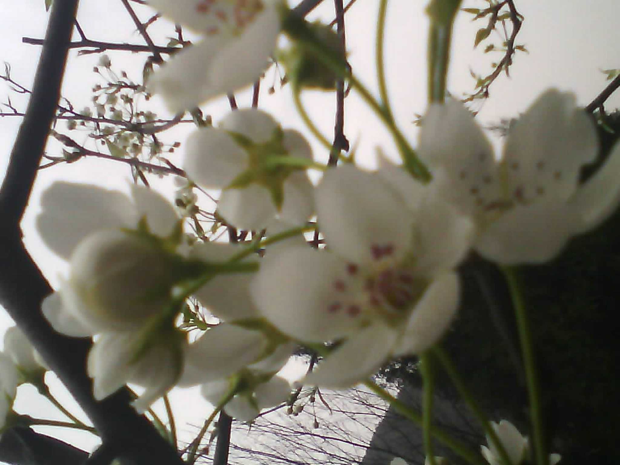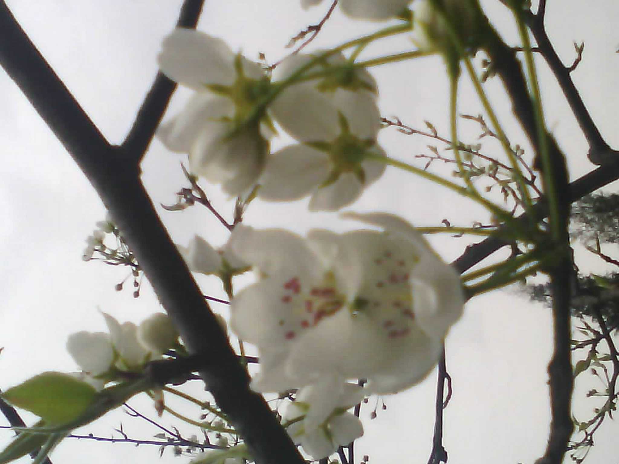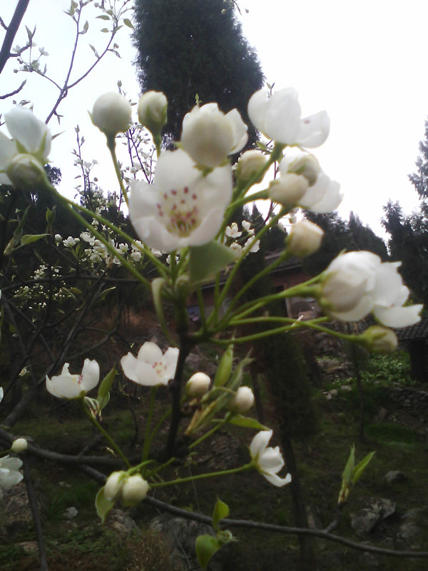远远看去,园子里稀疏的几棵梨树那婀娜多姿的身体上挂着数不清,却又看起来很少的梨花,像是一颗颗星星,点缀浩瀚的星空;又像是冬天里的雪花,衬托冬的气息。几棵梨树相互做伴,他们在一起谈论一些不为人知的的故事;又或许是它们自身的离奇的经历;更可能的是憧憬夏日的美好......可是谁也不懂他们的语言,谈着什么,论着什么,也就不为人知了哟!