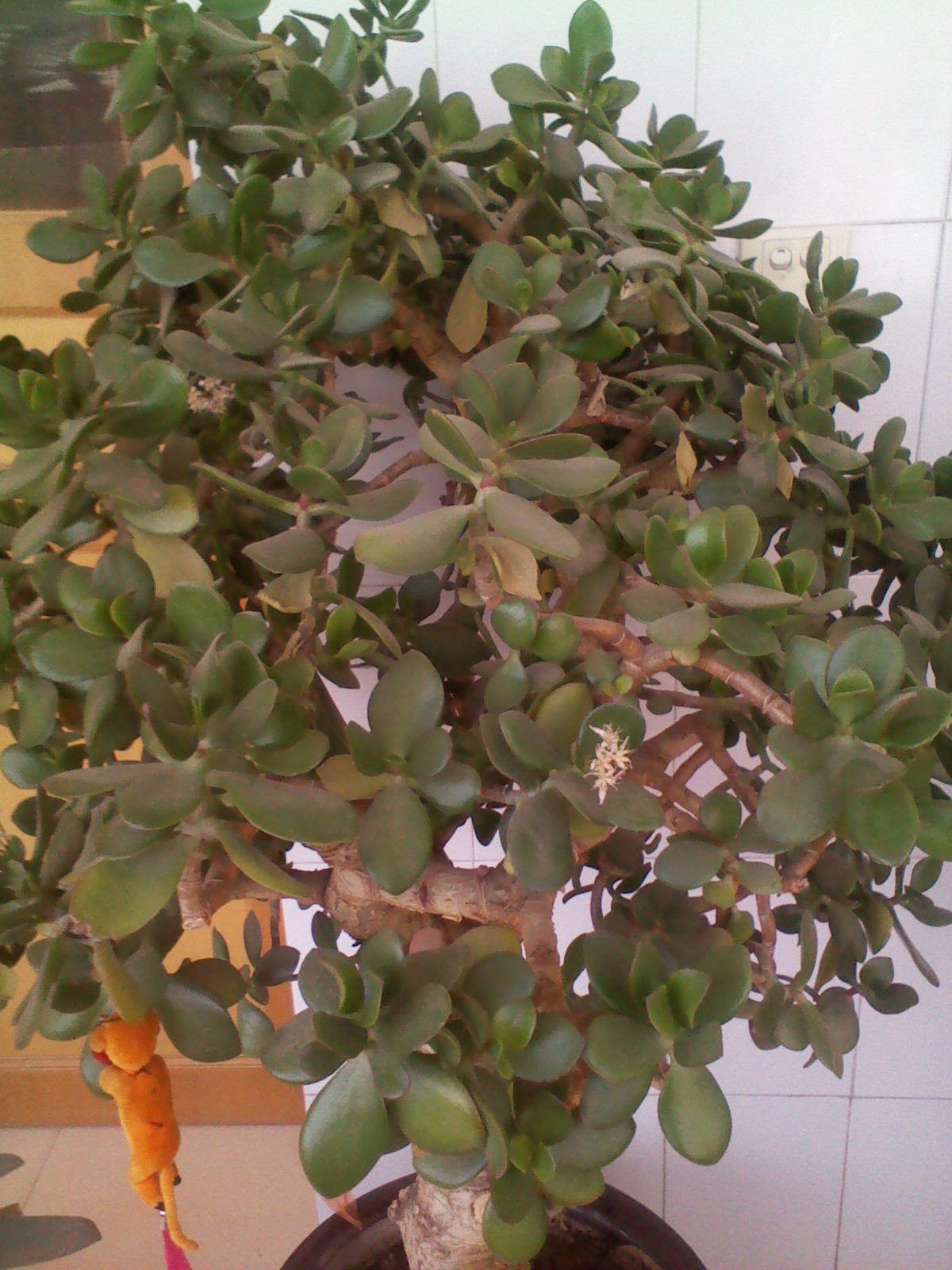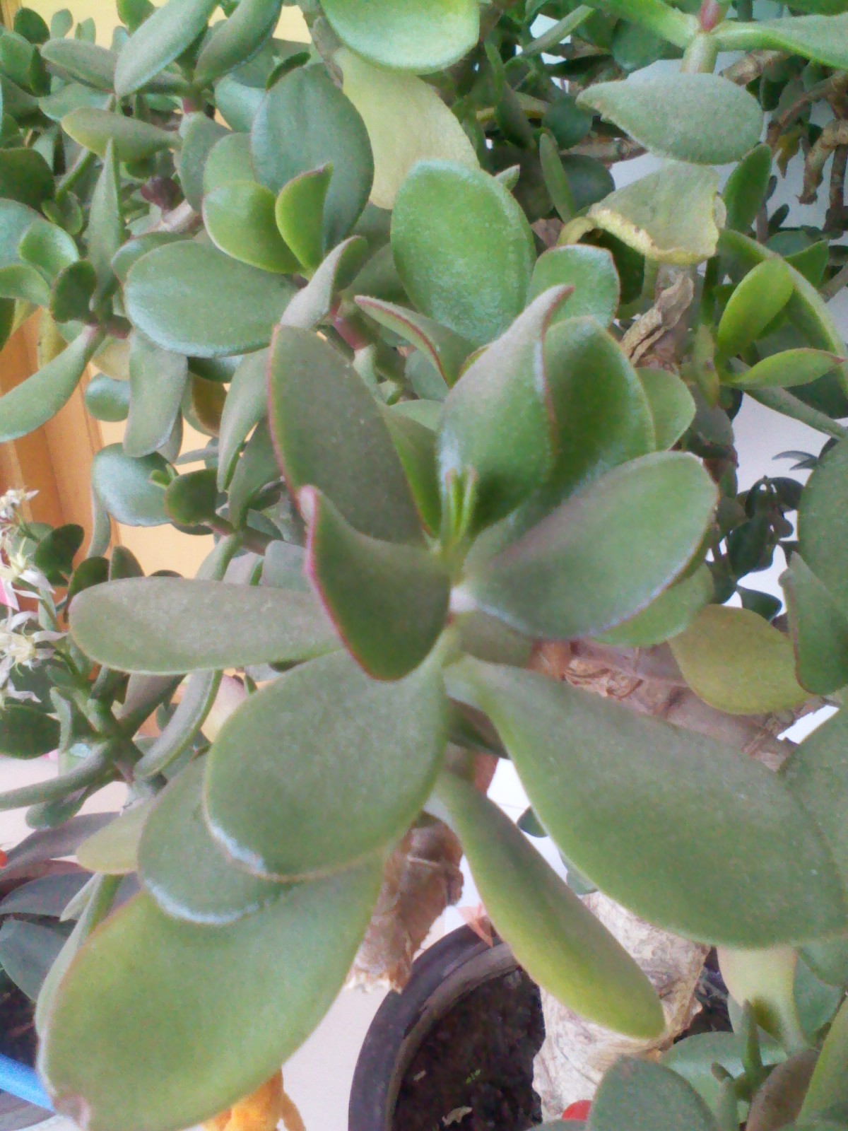 它的枝向外分开,大多枝都是直的,所以它所占的面积也很大,如果你想摘它,很容易,轻轻一掰便开了。它在我们家住了好几年了,也和它产生了感情,所以我爱金钱树。