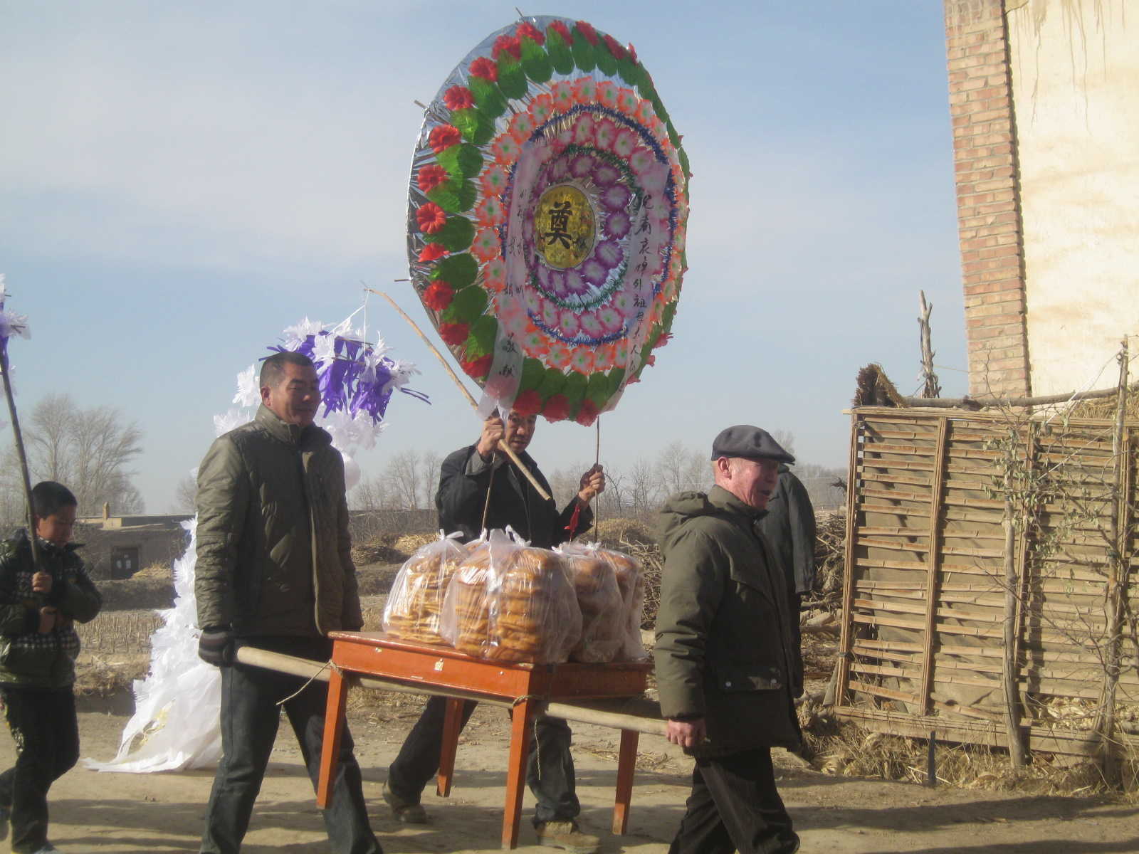之后开始了最重要的一个环节——迎大斋。第一个应该是大女儿,要在距离村子二公里外的路上等待迎斋人的到来。据老人们讲,这个距离越长证明这个女儿越孝顺,其次是二女儿,依次类推。如果没有女儿,就从侄女儿从大到小开始迎斋。