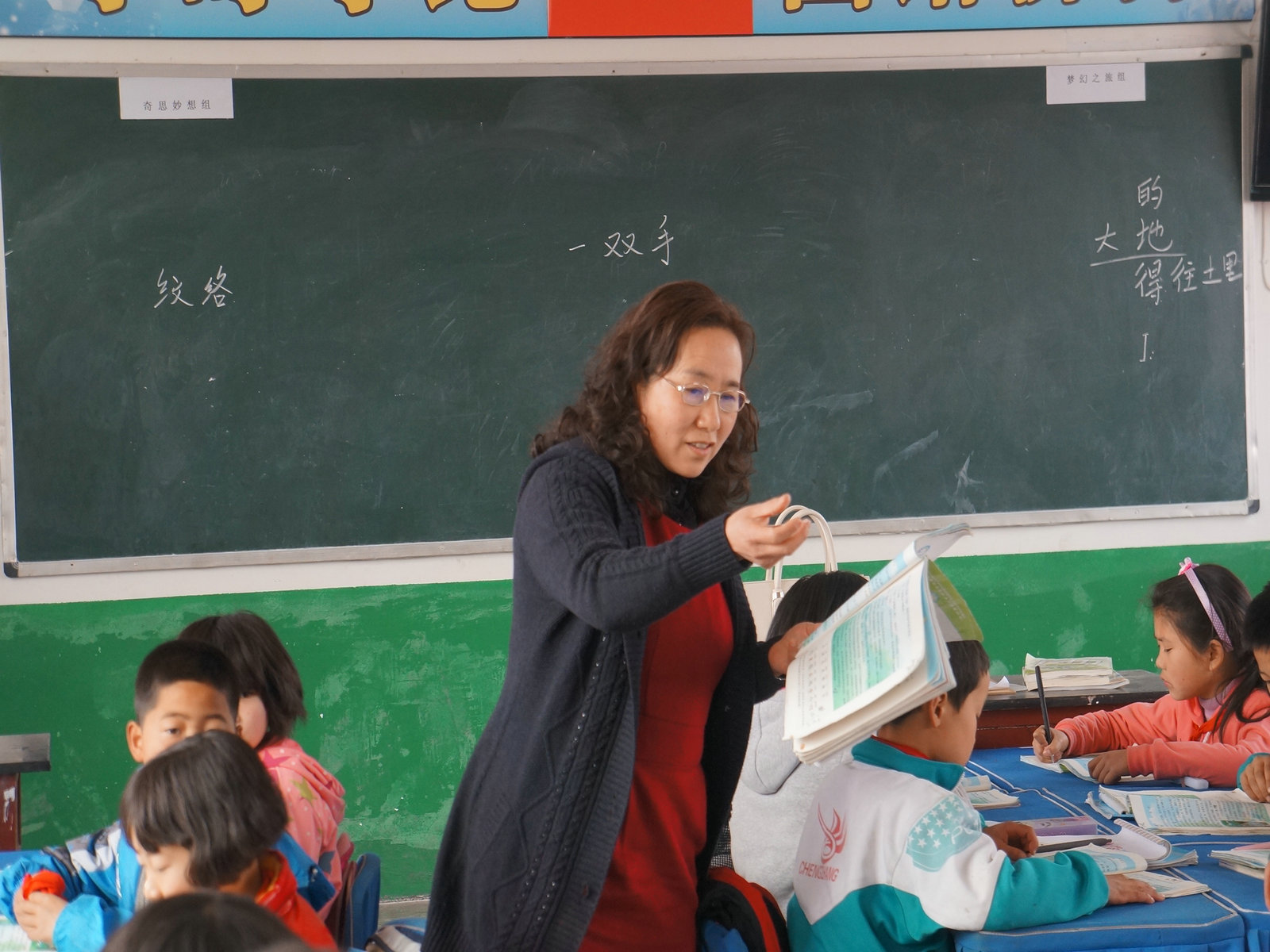 语文教研员张晓莉老师还身先士卒的在四年级进行了一堂示范课。她放下挎包,拿出课本,并没有用多媒体课件,同样上了一节高效的示范课,展示了中年教师娴熟的课堂技能,风采依旧,受到了全校师生的一致好评。
