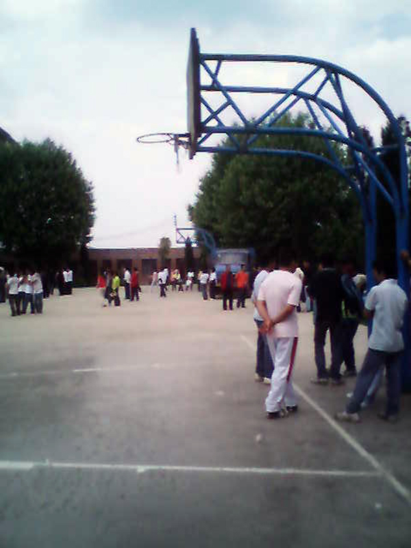 一分钟过后,楼上的同学全部下到了操场上,但那时我们操场上的蓝球板都还在动,好像中有人在投蓝时的震动一样的晃动。