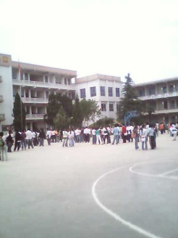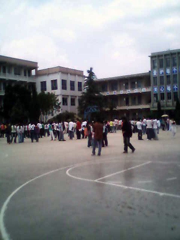 当时我到操场上时,只看见教学楼的玻璃还在晃动,在加上同学们从楼上跑下来的声音,感觉整栋教学楼好像是要踏下来似的。