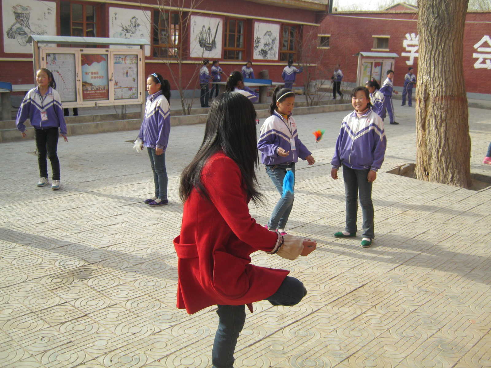 我们的英语老师也童心大发,在教室前面和我们班的女生们踢起了毽子。毽子在她的脚上自由地跳跃,像个蓝色的精灵。她那娴熟的动作,仿佛把她带到了她的学生时代,同学们都被她优美的姿势吸引了。
