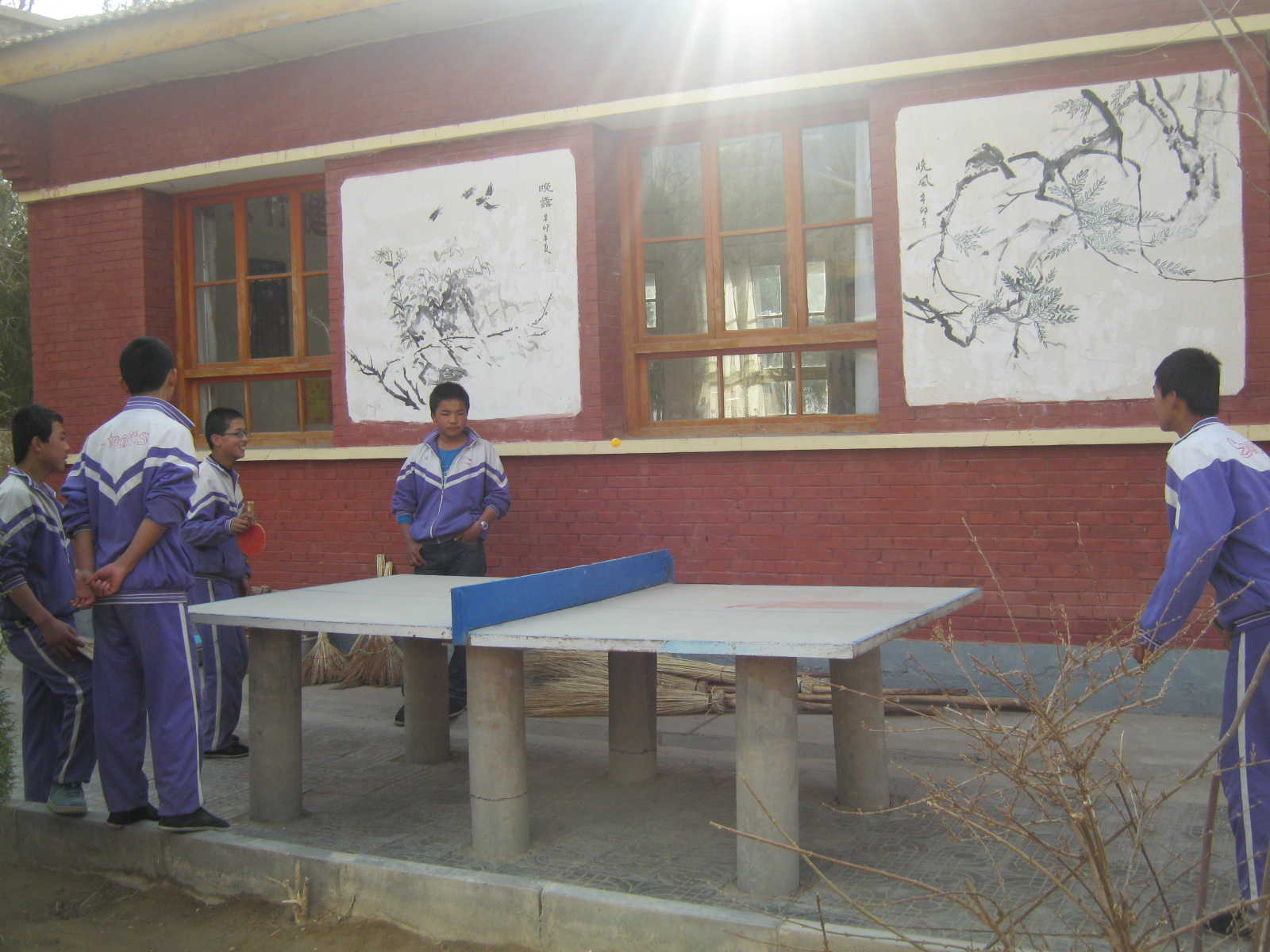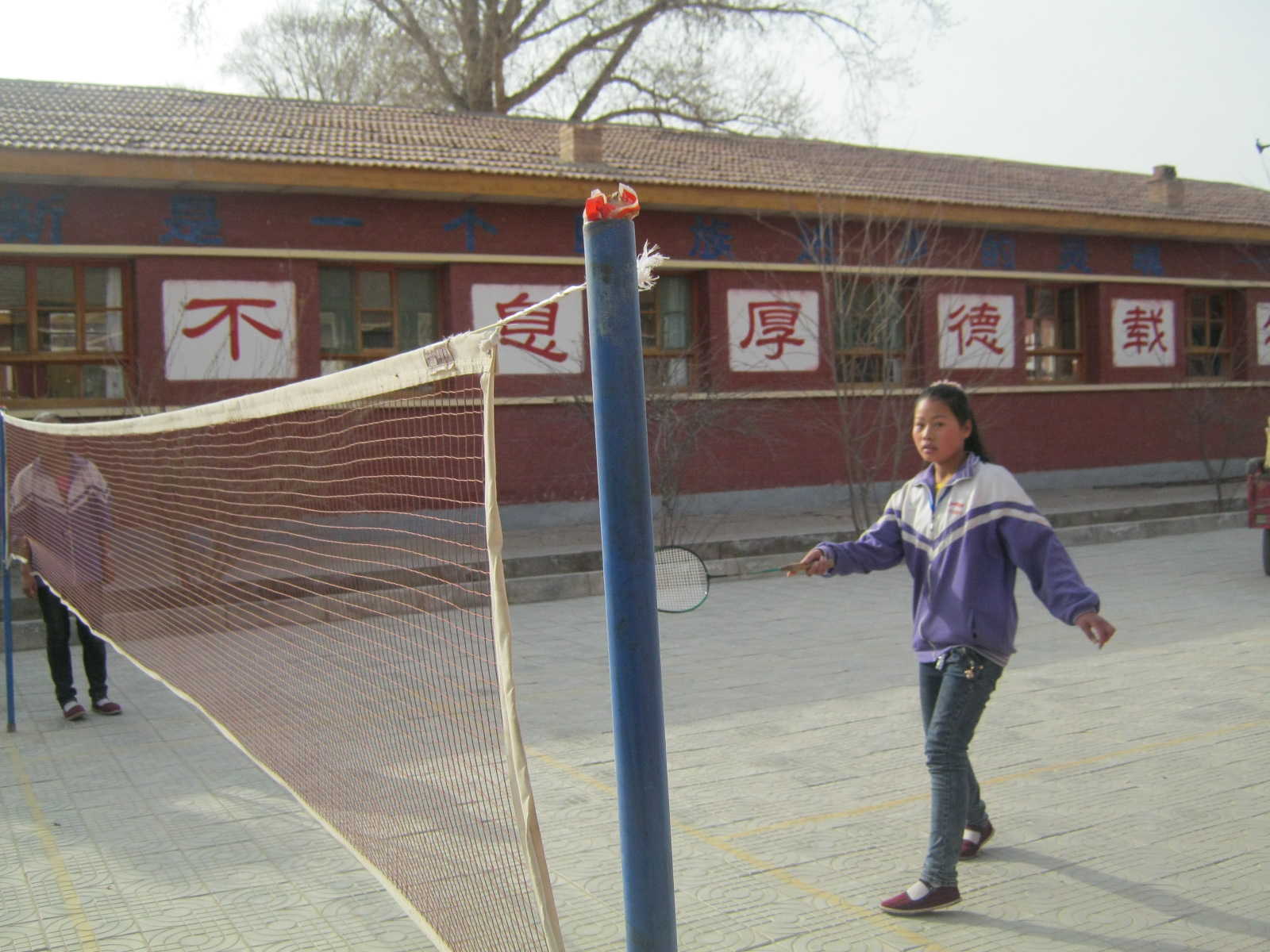 由于体育器材有限,能抢到羽毛球拍的更是幸运者。这是我们班两个比较机灵的同学,她们抢到羽毛球拍后,兴冲冲地跑出教室,来到羽毛球网前,快活地打起了羽毛球。