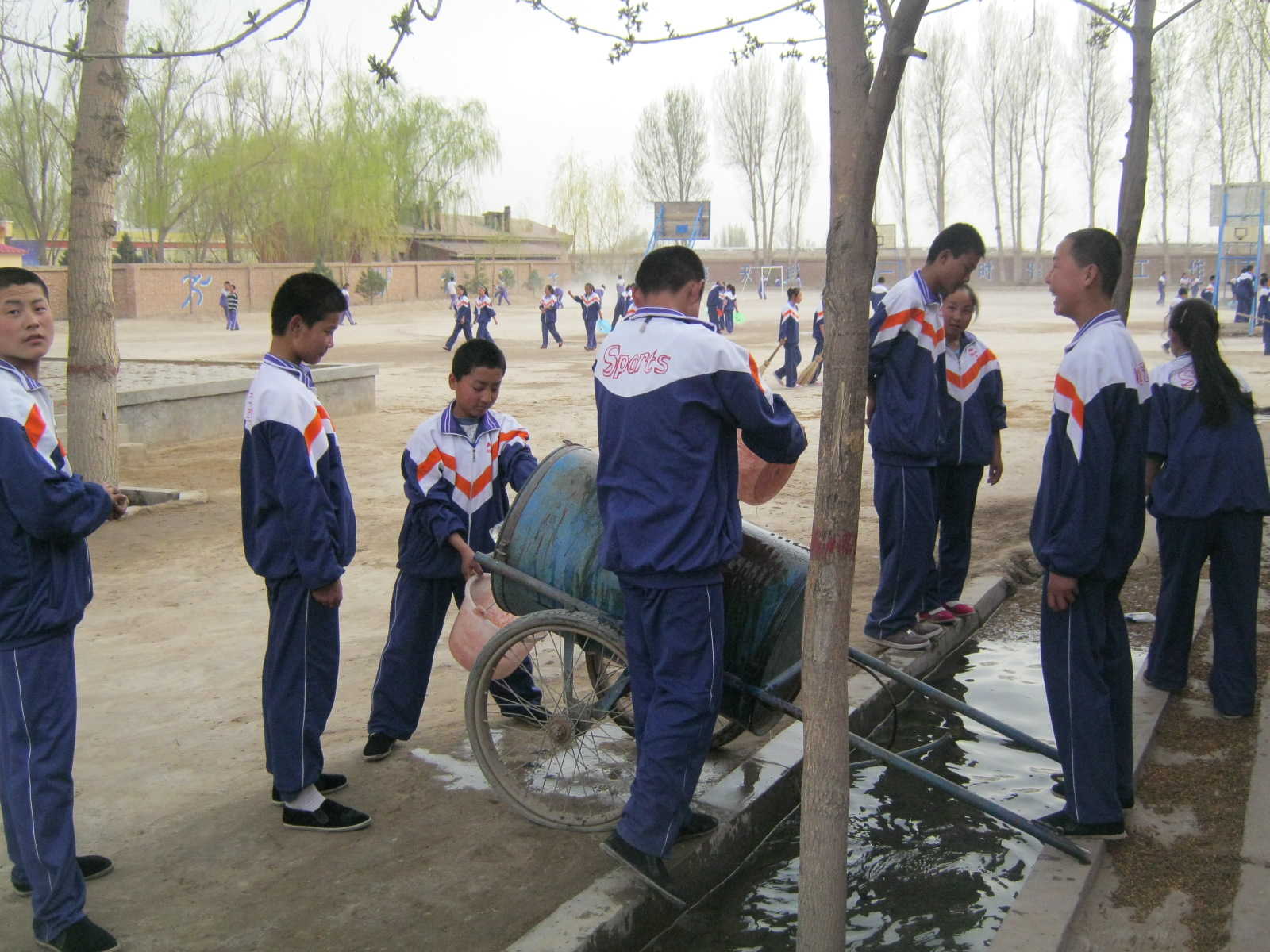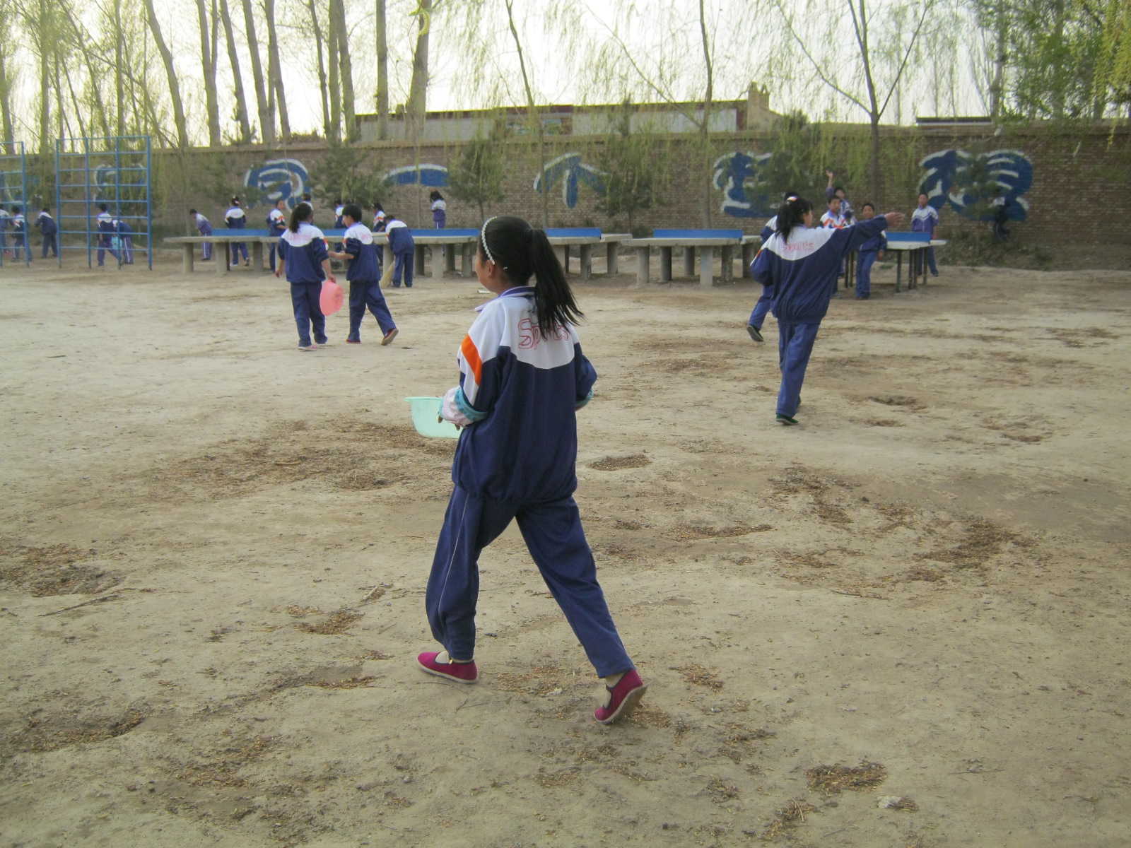 没有抢到洒水车的同学,只好端着盆子洒水。虽然比较慢,但同学们都争先恐后,没有一个偷懒的,尤其是女生,劳动积极性空前高涨。不管别人干什么,她们毫不在意,心中只有一个目标,把我们活动乐园中的灰尘消灭干净。