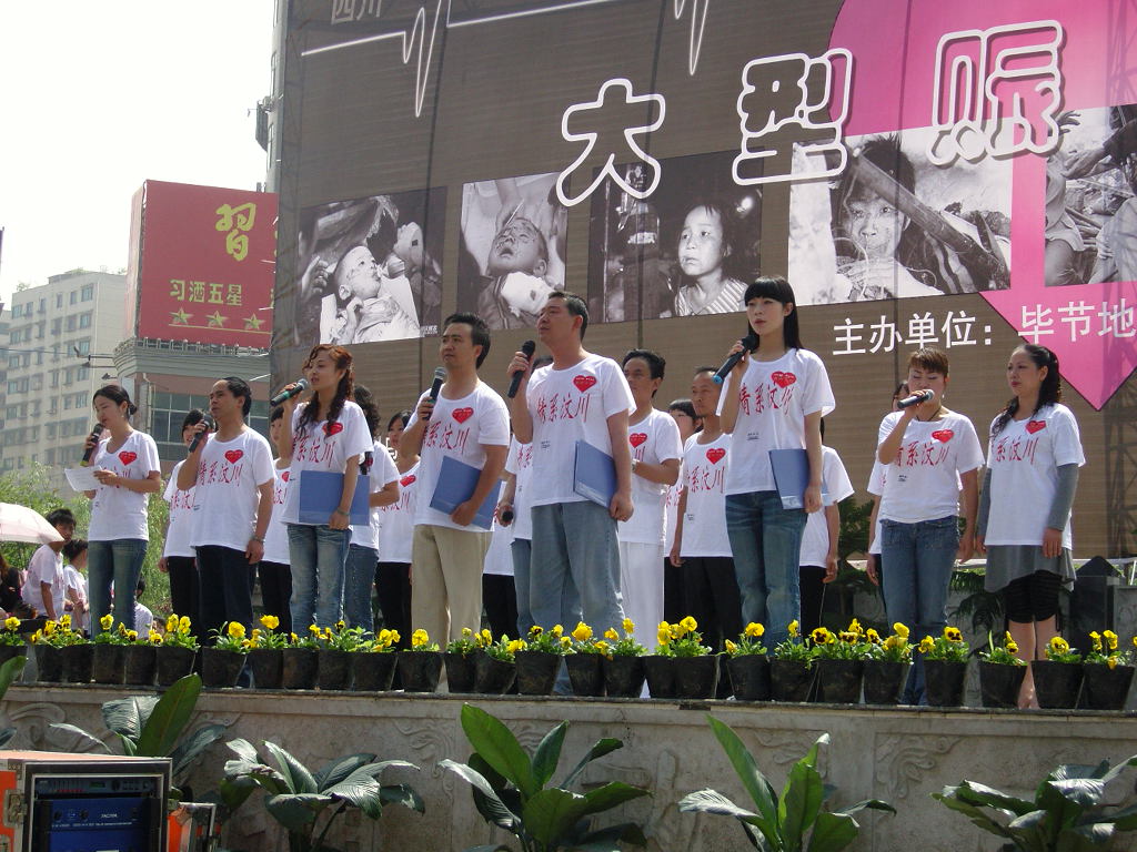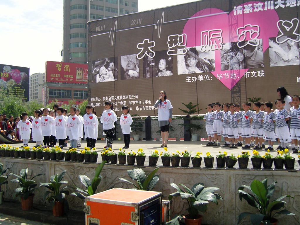 今年,地震肆虑。无情的地震吞噬着四川汶川无数人民群众的财产。多少无辜的生命瞬间消失在这场灾难中,在这危急的时刻,全国人民都伸出了援助之手。我们这个小城县也举行了一系列抗震救灾的义演。这场义演是由贵州乌蒙文化传煤有限公司特别承办的。承办单位有毕节文体广电局、红十字会、地区四方广告公司、蓝梦庆典礼仪公司。协办单位有贵州康宏工贸公司、地区泰丰科技实业有限公司、贵阳皇家饼屋毕节分店、宇捷通讯商城、城郊装璜广告、毕节市气象局、杭州娃哈哈集团公司贵州毕节办事处等。