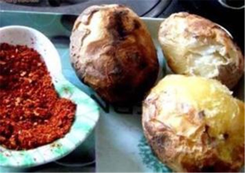 接下来,我们找来一些干燥的柴火,开始放在里面烧,烧可不能乱烧。一要保证垒好的土块能够被烧红烧热,二要保证里面的灰烬不能多,也不能少。这主要取决于你锅灶的大小和所放食物的多少而定。等土块烧红烧热时,我们就可以把事先找好的土豆和玉米放进去。放的时候要一边往锅灶里打土块,一边往里放食物。