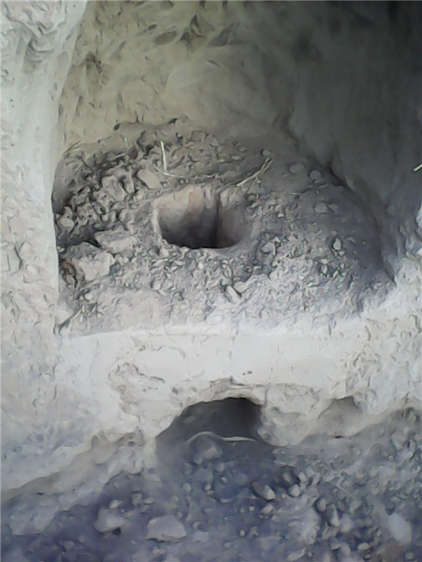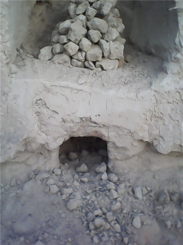 我们先选好地方,然后用铁锹和铲子在土墙上掏一个类似我们家里的锅灶。然后在上面垒一些小土块,把它们垒成一个类似于塔的东西。这一步最为关键,我们要保证它的坚固,稳定。所以最好用铲子把它削成棱形。这样烧的时候就不会塌了。