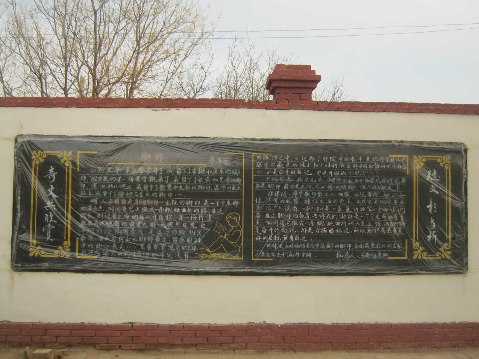 这一块原来是我们师生的"光荣榜",现在已被更换成了中国传统文化教育栏目。一边是奇文共欣赏,一边是立志教育篇。闲暇时间,同学们便来到这里,接受中国传统文化的熏陶。