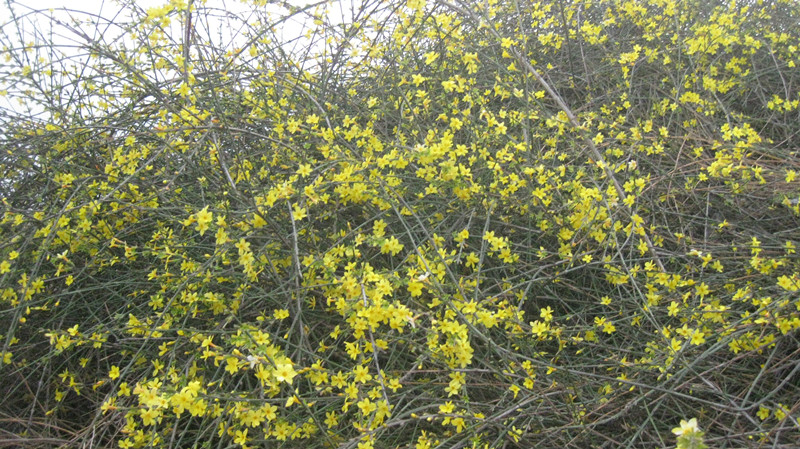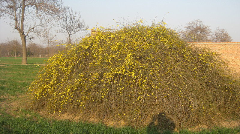 它生长在松软的泥土上,极容易生存,只要你栽一段枝芽,埋在土中,它一旦生活,便会在遍地生长出一大片迎春花,它的繁殖速度非常快,繁殖到一大片满地都是黄色的花。
