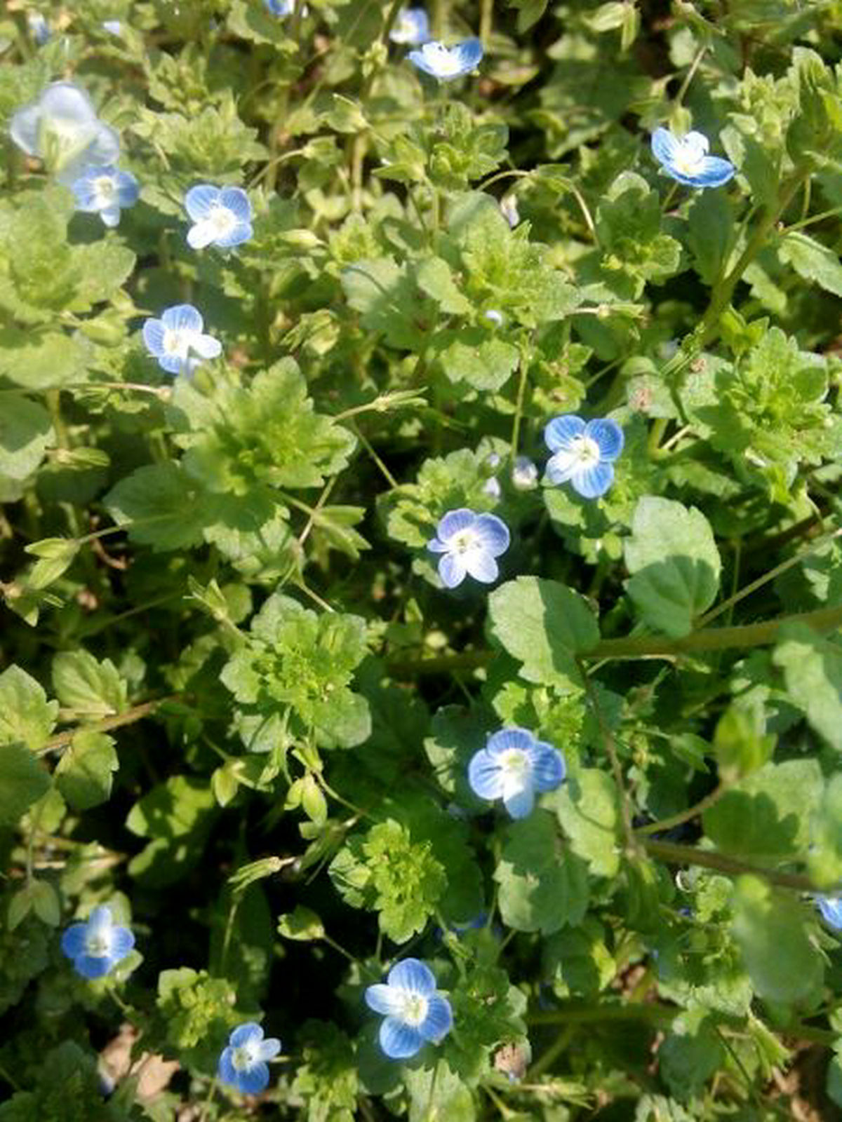 路边,还有不知名的小草,也郁郁葱葱的一簇簇开起了蓝色的小花。这是一种不起眼的花,有四个小花瓣,中间的花蕊是白色的,四周的花瓣是蓝色的。虽然不起眼,但是却很顽强。不管生在路边还是沟旁,它们都乐呵呵的接受这个现实,只顾努力的生长。虽然没人为它们施肥、浇水,但它们乐观的态度足够克服任何的困难。