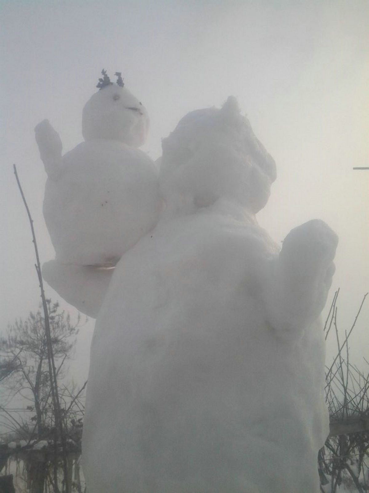 最后我们还堆了个大雪人,一手捧着个小雪人。当然这次只注重轮廓的勾画,五官就没有那样详细刻画了。堆雪人真的太有意思了!