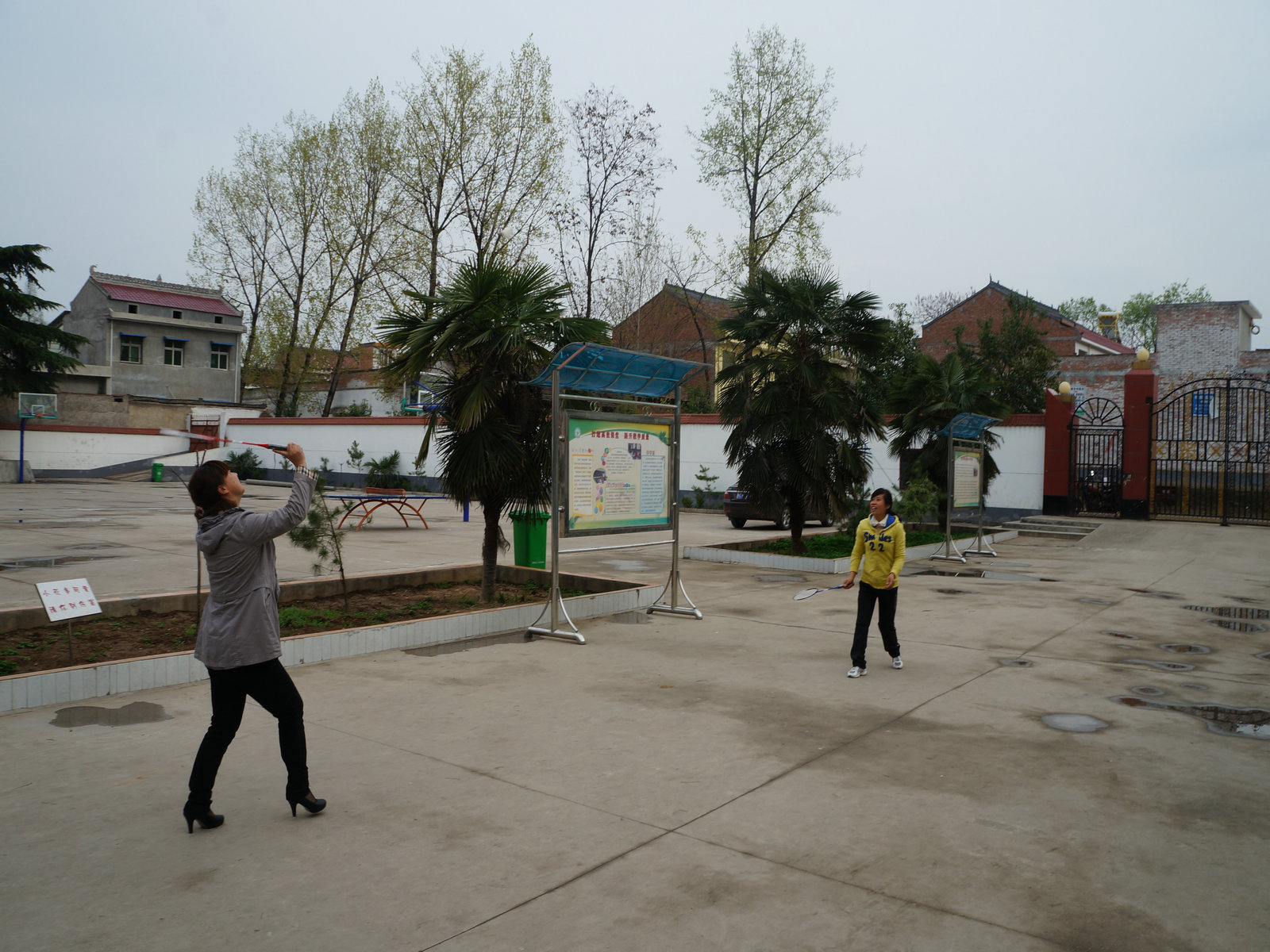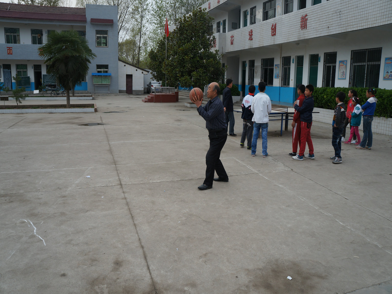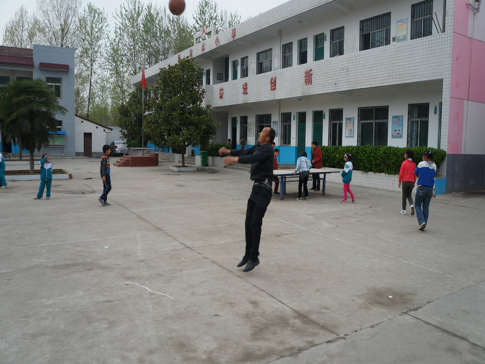 体育锻炼可谓是百家齐鸣,有打乒乓球的、打羽毛球的、还有打篮球的。尤其是部分老年教师,老当益壮。有的身姿矫健的抢球投篮,有的怡然自乐的打起了太极。