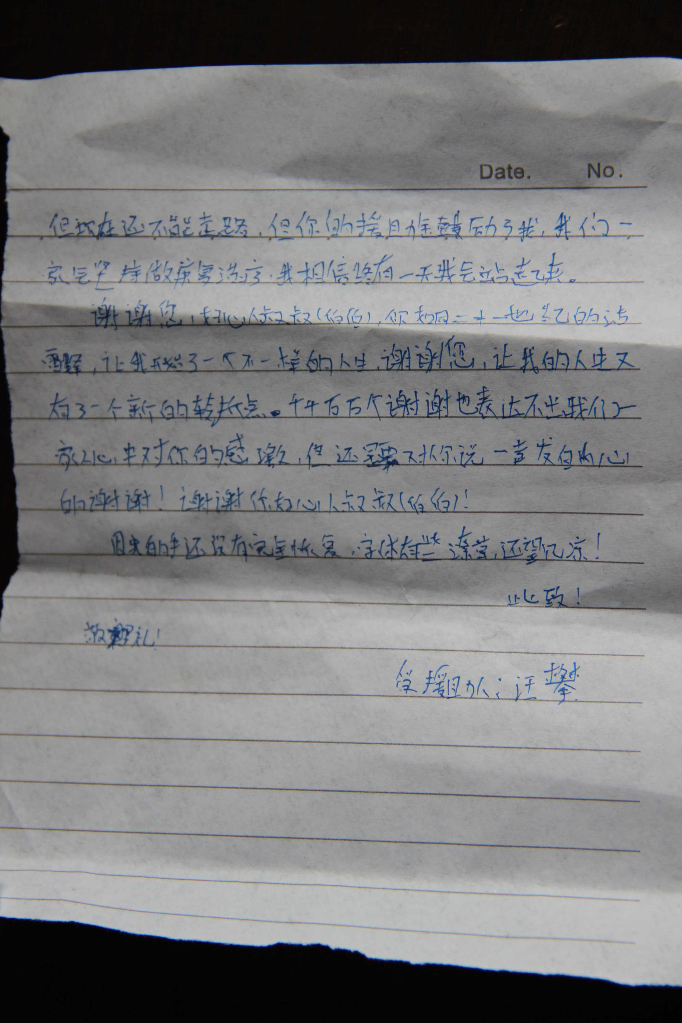 因为我的手还没有完全恢复,字体有些潦草,还望见谅!此致敬礼 受援助人:汪攀