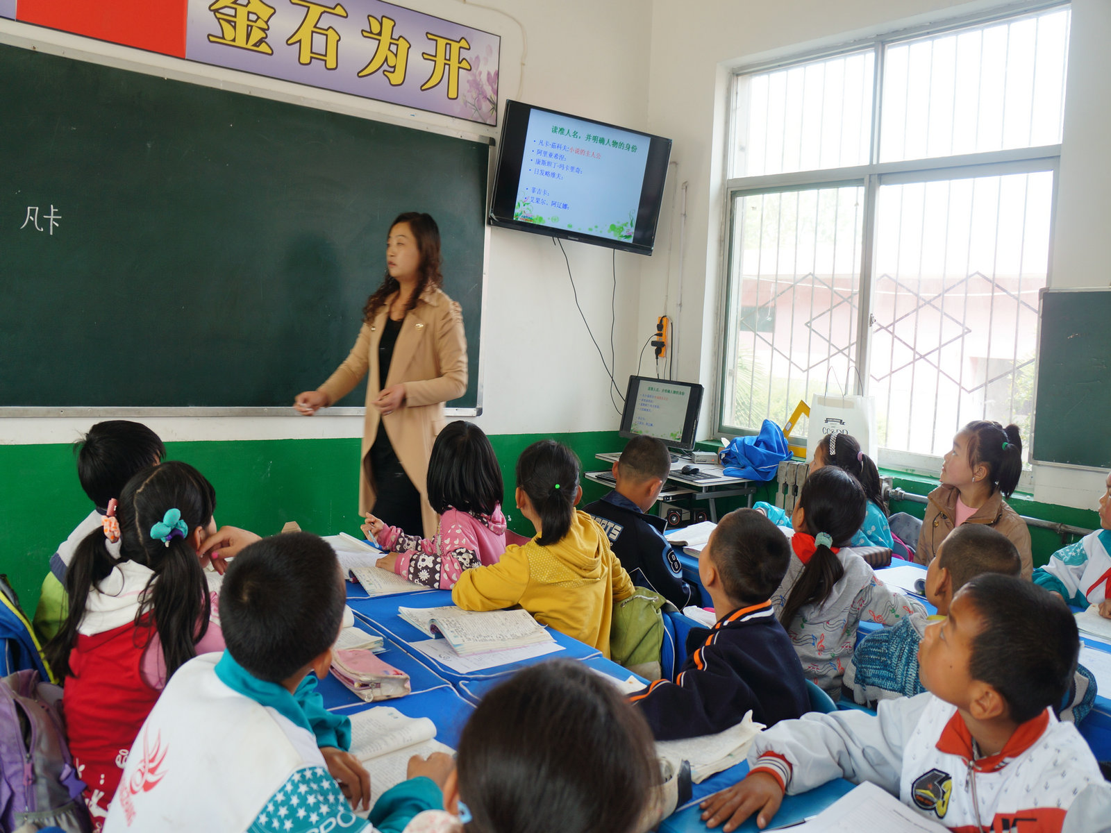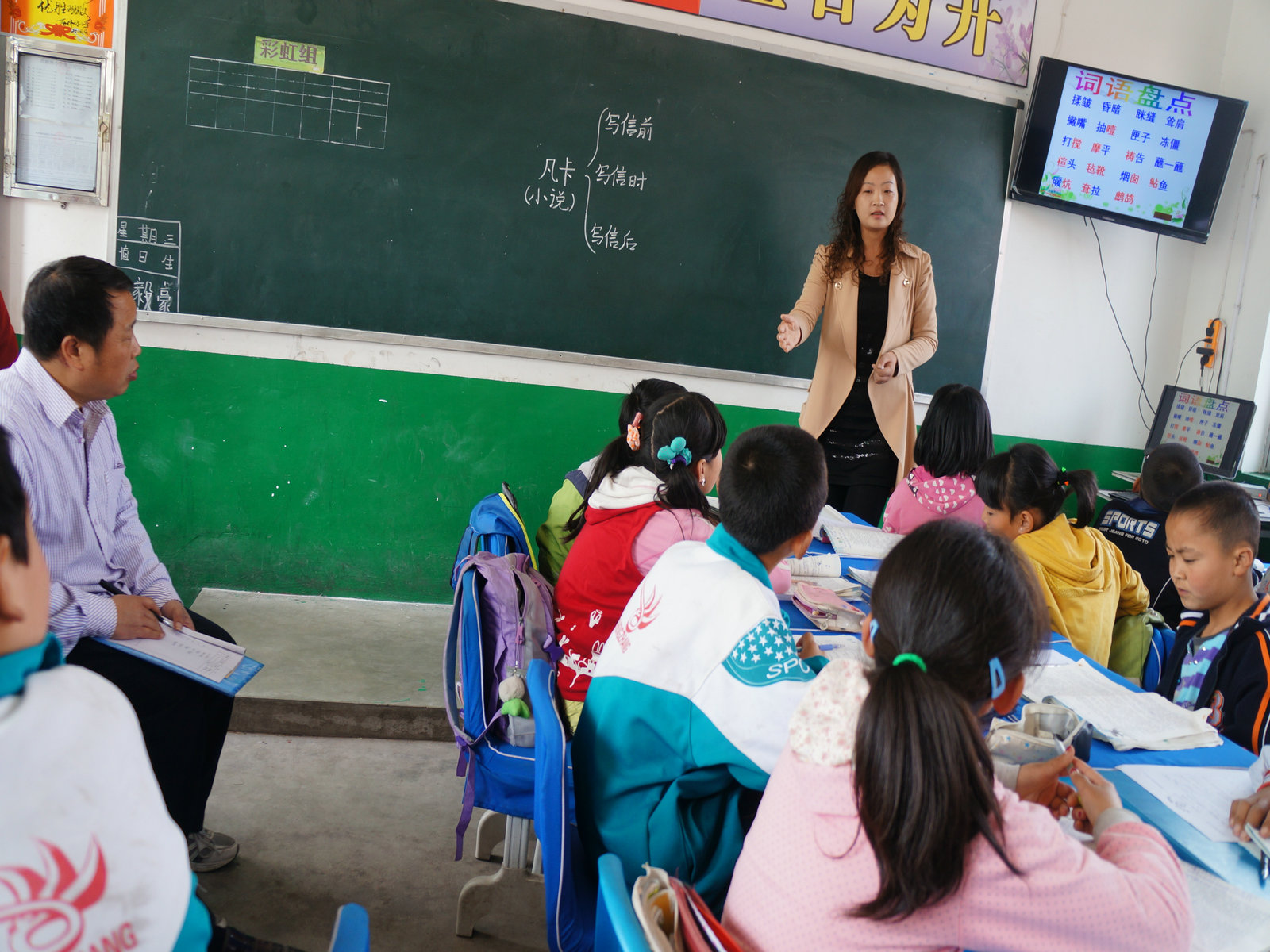 今天中午第三节我们五年级上了一节特殊的语文课。因为这是由槐芽镇中心小学的赵亚梅老师为我们上了一节示范课。还有不少老师参与了听课,有教委的老师和我们本校的老师。
