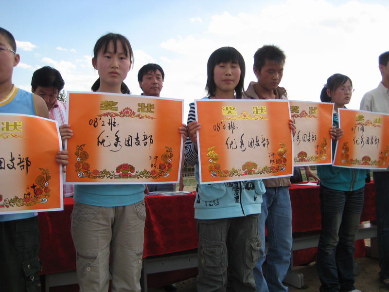 操场上充满了欢声笑语,大家一起在练习着…… 我把手伸向太阳,让阳光透过手指刺进眼睛,心中的激动如泉水般泛滥,看着眼前这些可爱的同学,我忽然间觉得生活很充实,也很美好。我们这群即将奔向高中的马儿们;充满着希望,我们在为自己的梦想而冲刺。我分明看到,美好的明天在向我们招手……