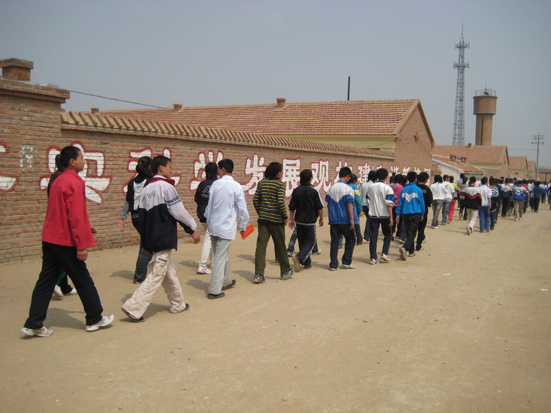早晨的空气格外的清新,我们是初三的学生为了五月份的体考,我们在努力着,每天早晨伴随着响亮的口号声,我们奔腾在操场上,向着朝阳,向着明天,向着未来,迈着坚定的步伐,一步,倆步,三步,即使累的面红耳赤,也不肯停下。坚持跑完三圈后,我们有了新的目标,大家你一团,我一团地围在一起,在坚实的土地上画下一道笔直的线,我们要举行原地跳远,为了能在体考上获得好成绩,大家在积极的练习着。瞧,站在我旁边的这位女孩,是我们班的大嗓门,她既有着女孩的外表,却也有着男孩的豪迈。这个女孩非同一般,她的跳远能力不差男生,只见她双手向后一摆,双脚用力弹出,像弹簧一样,飞了一米九,真不愧是女中豪杰呀!
